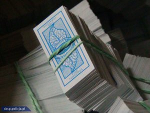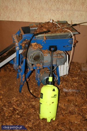 Wytwórnia znajdowała się na wynajmowanej posesji. Policjanci zabezpieczyli 992 kg nielegalnego tytoniu przygotowanego do rozdrobnienia i 310 kg wytworzonej krajanki tytoniowej. Ponadto, maszynę służącą do produkcji tytoniu, nawilżacze do konfekcjonowania tytoniu, wagę oraz kartony w które pakowany był wytworzony tytoń. Wszystko warte prawie milion złotych.