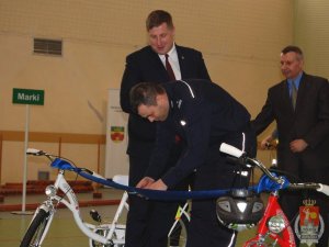 W hali sportowo-widowiskowej przy ulicy Dużej w Markach, w piątek, zainaugurowano funkcjonowanie mareckiego mobilnego miasteczka ruchu drogowego. W uroczystym przecięciu wstęgi oraz otwarciu miasteczka rowerowego udział wzięli inspektor Marek Konkolewski z Komendy Głównej Policji, Jacek Zalewski - prezes Zarządu Krajowego Centrum Bezpieczeństwa Ruchu Drogowego, Komendant Powiatowy Policji w Wołominie podinspektor dr Marek Ujazda oraz Komendant Komisariatu Policji w Markach podinspektor Andrzej Oleksiak.