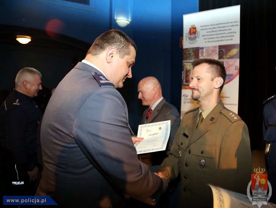 W Kinie Muranów odbyło się podsumowanie nowatorskiego projektu „Szkolenie służb państwowych na rzecz ochrony dorobku Schengen w zakresie weryfikacji zabezpieczeń dokumentów tożsamości, podróży, kart pobytu oraz dokumentów w obrocie gospodarczym UE z użyciem nowych technologii”. W spotkaniu udział wziął Zastępca Komendanta Stołecznego Policji mł. insp. Hubert Kowalczewski oraz przedstawiciele Nadwiślańskiego Oddziału Straży Granicznej, Ministerstwa Spraw Wewnętrznych, Komendy Głównej Straży Granicznej, Polskiego Towarzystwa Kryminalistycznego, Polskiej Wytwórni Papierów Wartościowych, Urzędu m.st. Warszawy.