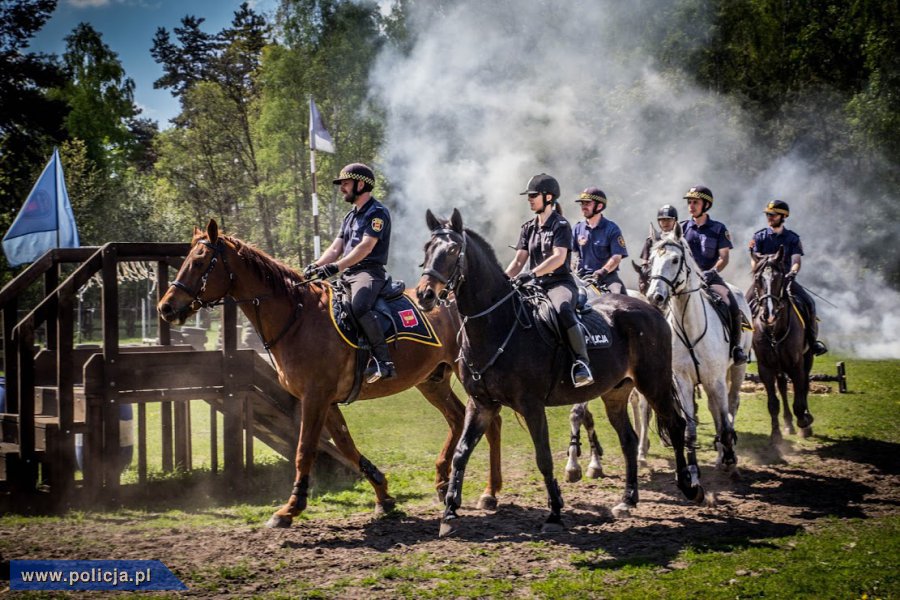 Koń policyjny powinien charakteryzować się przede wszystkim dużym spokojem i opanowaniem. Nie może nerwowo reagować na odgłosy wystrzałów, ujadanie psów czy głośne zachowania tłumu. Dlatego też podczas ćwiczeń jeźdźcy i konie musieli wykazać się nie tylko umiejętnością jazdy w szykach, w różnego rodzaju konfiguracjach. Policjanci i Strażnicy musieli opanować rumaki w niecodziennych dla nich warunkach – przy huku petard, w dymie czy podczas pokonywania płonącej przeszkody. Wszystko po to, by zwierzęta były przygotowane do służby podczas choćby takich imprez jak mecze piłki nożnej, gdzie jest duże skupisko ludzi, hałasy, a czasem nawet race świetlne.