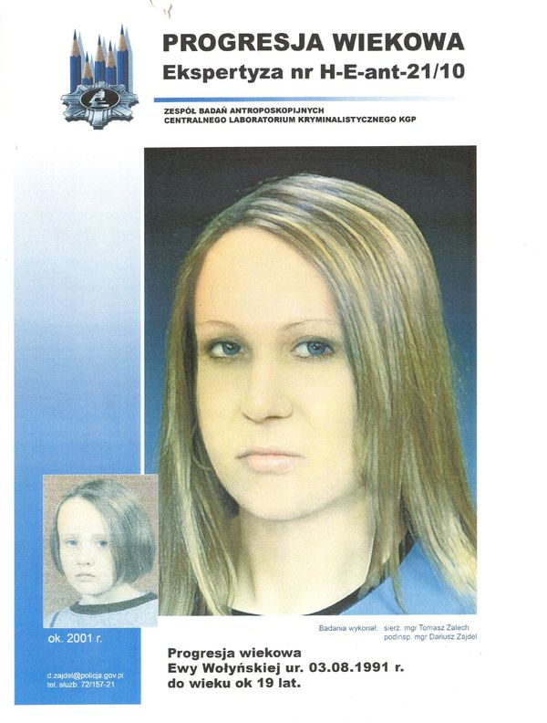 Ewa Wołyńska - w sierpniu skończy 25 lat. 5 lutego 2002 r. bawiła się w okolicy swojego domu w Karlinie (woj. zachodniopomorskie). Jej rodzice pojechali na zakupy, po powrocie nie zastali córki w domu ani w najbliższej okolicy.