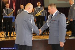 Komendant Wojewódzki Policji we Wrocławiu insp. Arkadiusz Golanowski uroczyście wręczył rozkazy personalne insp. Andrzejowi Łuczyszynowi oraz insp. Piotrowi Leciejewskiemu, powołanym przez Komendanta Głównego Policji na stanowiska Zastępców Komendanta Wojewódzkiego Policji we Wrocławiu. W uroczystości uczestniczyła kadra kierownicza Komendy Wojewódzkiej Policji we Wrocławiu, komendanci miejscy i powiatowi garnizonu dolnośląskiego. Komendant Wojewódzki Policji we Wrocławiu insp. Arkadiusz Golanowski gratulując insp. Andrzejowi Łuczyszynowi i insp. Piotrowi Leciejewskiemu objęcia stanowisk podkreślił, że ich doświadczenie i predyspozycje, nabyte przez lata służby, niewątpliwe przełożą się na dalszy wzrost poprawy bezpieczeństwa na terenie województwa dolnośląskiego.