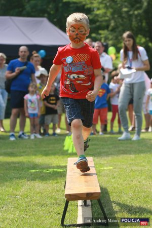 Wszystkich do zabawy zagrzewała kadra sportowa oraz maskotka Stołecznej Policji, z którą każdy uczestnik mógł zrobić sobie zdjęcie czy też utrwalić chwilę w Fotobudce.