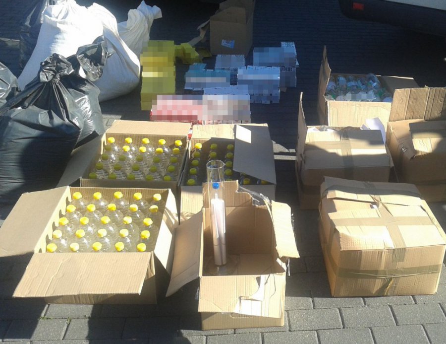 Przy kierowcy policjanci znaleźli kilka woreczków strunowych z blisko 50 gramami białego proszku. Już wstępne badanie narkotesterem wykazało, że była to amfetamina. W części ładunkowej samochodu funkcjonariusze znaleźli 200 litrów spirytusu, ponad 1000 paczek papierosów oraz 120 kilogramów krajanki tytoniowej. Żaden z towarów nie miał wymaganych prawem znaków akcyzowych.