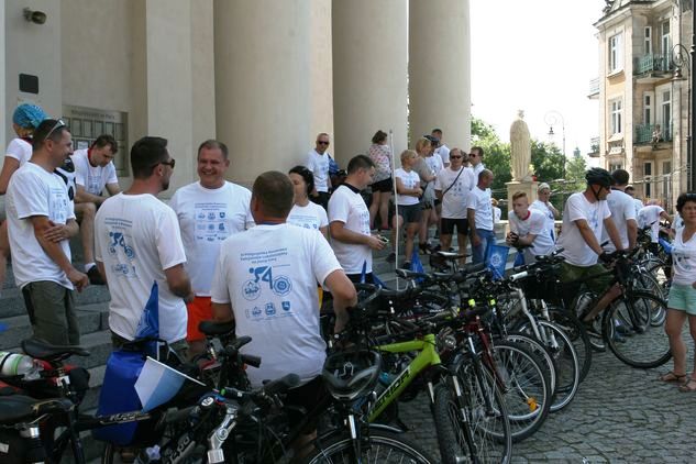 Grupa osób tworzących IV Pielgrzymkę Rowerową Policjantów Lubelszczyzny na Jasną Górę wyruszyła o godz. 10:30 spod Archikatedry Lubelskiej, gdzie odbyła się msza święta, która oficjalnie rozpoczęła pielgrzymkę.