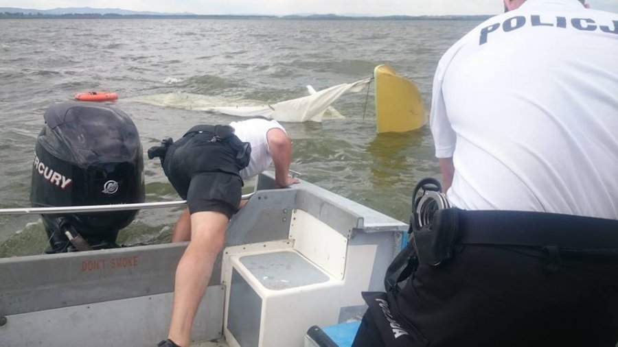 W sobotnie popołudnie, policyjni wodniacy otrzymali zgłoszenie, że na Jeziorze Otmuchowskim wywróciła się łódź. Mundurowi natychmiast wypłynęli i rozpoczęli poszukiwania załogi. Około kilometr od brzegu zauważyli wywrócony do góry dnem jacht. Obok w wodzie znajdowały się dwie osoby.