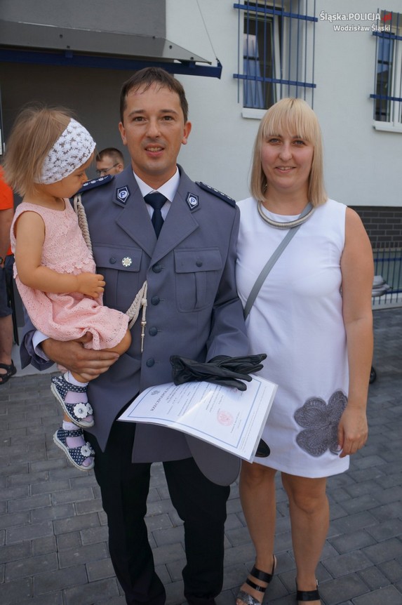 Tegoroczne obchody Święta Policji w Wodzisławiu Śląskim odbyły się na placu wewnętrznym gruntownie odnowionego budynku Komendy Powiatowej Policji w Wodzisławiu Śląskim. Powitaniem i przedstawieniem gości, uroczystość rozpoczął Komendant Powiatowy Policji w Wodzisławiu mł. insp. Jarosław Grudziński, który przy okazji dzisiejszego święta został oficjalnie powołany na to stanowisko. W dalszej części uroczystości, Komendant Wojewódzki Policji w Katowicach insp. Krzysztof Justyński wraz z Komendantem Powiatowym Policji w Wodzisławiu Śląskim mł. insp. Jarosławem Grudzińskim wręczyli 86 policjantom nominacje na wyższe stopnie policyjne oraz wręczyli listy gratulacyjne czterem pracownikom cywilnym tej komendy. Brązową Odznaką Zasłużony policjant został odznaczony st. sierż. Łukasz Rybicki, który przez ponad 20 minut prowadził reanimację mężczyzny, tym samym ratując mu życie. Specjalne wyróżnienie oraz słowa uznania od Komendanta Wojewódzkiego Policji otrzymała także Pani Urszula Króliczek, koordynator Wydziału Finansów i Zaopatrzenia tutejszej jednostki.