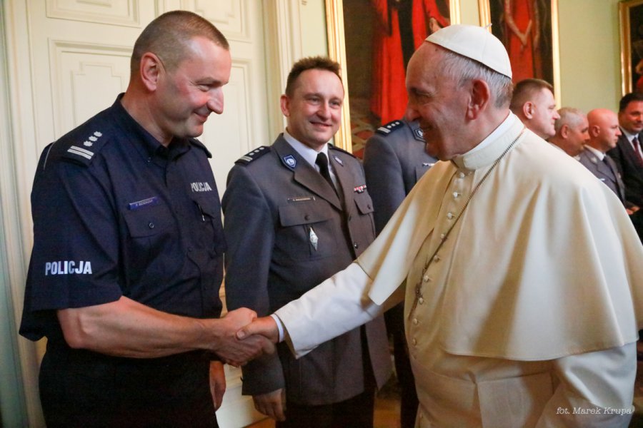 Papież Franciszek spotkał się w Pałacu Arcybiskupów Krakowskich z funkcjonariuszami, by podziękować im za zabezpieczenie ŚDM.