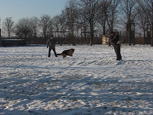 Pierwszym zadaniem było aportowanie - pies powinien przynosić rzuconą rzecz. Przewodnicy oceniali też agresję psa - idealny kandydat powinien zaatakować pozoranta, który wymachuje przy nim kijem i bronić swojego opiekuna. Psy przeszły te same próby na zewnątrz i w pomieszczeniach. Niektóre wyeliminował huk wystrzałów. To też ważny wymóg stawiany czworonożnym kandydatom do Policji - nie mogą bać się huku.