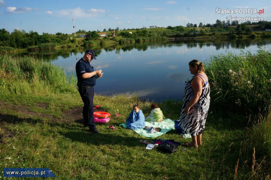 Mając na uwadze istotę zagrożeń z jakimi mogą się spotkać osoby kąpiące się w niestrzeżonych akwenach, świętochłowiccy policjanci w ramach działałań profilaktycznych dokonali wielokrotnych kontroli akwenów zlokalizowanych na terenie miasta. W przypadku ujawnienia kąpiących się osób, po przeprowadzonej rozmowie profilaktycznej, wręczali im bilet uprawniający do wejścia i skorzystania z Kąpieliska Miejskiego w Świętochłowicach.