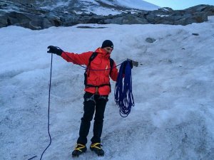 Pomysł z Mont Blanc położonym w masywie Alp Francusko-Włoskich z wysokością 4810m.n.p.m. pojawił się w zeszłym roku, jednak jego realizacja z wielu przyczyn możliwa była dopiero w tym roku. Spontaniczny zryw na wyjazd w lipcu bieżącego roku przerwała potrzeba służby związana z zabezpieczaniem przez Policję Światowych Dni Młodzieży, jednak nie warto odpuszczać i do końca dążyć w realizacji założonych celów. Nadszedł sierpień. Zgoda na urlop – tydzień będzie musiał wystarczyć. Nowa znajomość z innym amatorem wspinaczki ze Śląska, szybka decyzja o wyjeździe. W ostatni dzień kompletowanie sprzętu, raki, czekan, lina, uprząż. Po 1500 przejechanych kilmetrach i całonocnej podróży, wspinacze dotarli do autonomicznej włoskiej doliny Aosty, tam z doliny Pont wyruszyli do schroniska Emmanuelle II, a następnego dnia zdobyli pierwszy lodowiec w życiu, włoski Gran Paradiso (GP) 4061m.n.p.m. Wejście na ten szczytu miało umożliwić zdobycie aklimatyzacji, celem uniknięcia skutków choroby wysokościowej. GP to góra o średnim stopniu trudności, jednak wiejący kilkadziesiąt km/h silny watr potęgował odczucie zimna.