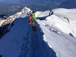 14 sierpnia 2016 roku przed godziną 8.00 wspinacze dotarli na szczyt Mont Blank 4810m.n.p.m. Zmęczeni, jednak szczęśliwi, zrobili kilka pamiątkowych zdjęć i wyruszli w drogę powrotną. Po drodze mijali wiele osób zmagających się z chorobą wysokościową – ból i zawroty głowy, wymioty, osłabienie to główne symptomy. Niska podstawa chmur nie ułatwiała zejścia po skalnej ścianie poniżej schroniska Gouter, do pokonania był jeszcze tylko Źleb Śmierci nazywany przez anglików Kuluar Rolling Stones, gdzie wiele osób poniosło śmierć od spadających kamieni i bloków skalnych. Po nocleg na kempingu, 15 sierpnia w południe rozpoczęła się podróz do Polski.