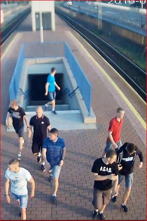 Z materiałów sprawy wynika, że 19 sierpnia 2016 roku, około godziny 18.50, grupa kilkudziesięciu pseudokibiców przyjechała pociągiem relacji Warszawa-Wschodnia - Łódź-Kaliska. Młodzi mężczyźni po opuszczeniu pociągu dopuścili się przestępstwa nawoływania do nienawiści na tle różnic narodowościowych, a także zniszczyli elewację podczas palenia kukieł. Dodatkowo odpalali race świetlne.