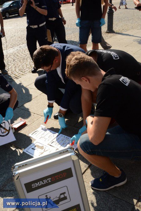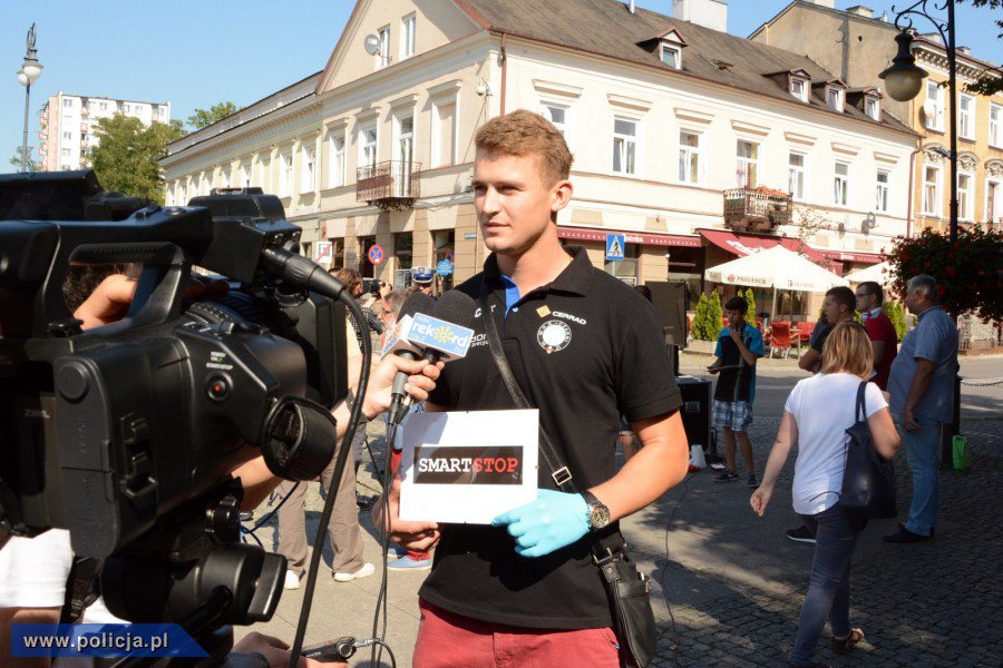 Wczoraj (7 września 2016 r.) radomscy siatkarze: Bartłomiej Bołądź, Piotr Filipowicz i Michał Kędzierski wspólnie z mundurowymi z Komendy Wojewódzkiej Policji zs. w Radomiu oraz wiceprezydentem Radomia – Konradem Frysztakiem, przy pomocy specjalnej fluorescencyjnej farby, nanieśli na chodnikach ostrzeżenia z przewodnim hasłem kampanii „Smart Stop”. Napisy takie pojawią się teraz przed przejściami dla pieszych, gdzie pojawia się dużo młodzieży, w tym przed radomskimi uczelniami.
