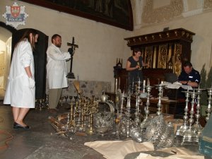 Przypomnijmy, że w ramach działań podjęto starania zmierzające w pierwszej kolejności do porównania stanów posiadania ewidencyjnego, czyli tego, czym winna świątynia dysponować zgodnie ze zgromadzoną wcześniej dokumentacją, ze stanem faktycznym, czyli tym co rzeczywiście zastano w świątyni przed podjęciem prac. Zadanie to wbrew pozorom nie jest proste, biorąc pod uwagę samą skalę działania, obejmującą w sumie ponad tysiąc przedmiotów zabytkowych! Nie powinno to nikogo dziwić biorąc pod uwagę długą historię tych dwóch budowli sakralnych sięgającą początków państwa polskiego, jeśli nie bezpośrednio to na pewno za pośrednictwem obiektów na gruzach których powstawały, stanowiąc ich kontynuację zarówno w sensie instytucjonalnym jak i użytkowym. Dodatkowo w trakcie tych prac ponownie wykonywana jest szczegółowa dokumentacja fotograficzna każdego nawet najdrobniejszego obiektu.