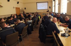 Mł. insp. Adam Tychowicz - p.o. Zastępcy Komendanta Wojewódzkiego Policji w Opolu otworzył spotkanie policjantów – koordynatorów Krajowej Mapy Zagrożeń Bezpieczeństwa. Spotkanie miało na celu omówienie i przypomnienie aktualnych przepisów jakie regulują funkcjonowanie aplikacji na terenie Opolszczyzny.
