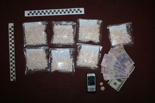 Policjanci z Myślenic podczas kontroli drogowej jadącego „ zakopianką” golfa zatrzymali dwóch mężczyzn. Jeden z nich miał ukryte w ubraniu foliowe woreczki a w nich tabletki ekstazy. W sumie znaleziono przy nim prawie 2 tysiące tabletek.