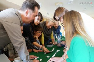 Pani Monika Folwarczny wspólnie z mł. insp. Krzysztofem Kazkiem – Pełnomocnikiem Komendanta Wojewódzkiego Policji ds. Ochrony Praw Człowieka przeprowadzili warsztaty dotyczące komunikacji z osobami niesłyszącymi i niedosłyszącymi. Prowadzący zwrócili uwagę, jakie trudności mogą wystąpić w codziennej komunikacji z tymi osobami podczas pracy policjantów oraz zwrócili uwagę na prawa ludzi z dysfunkcją narządu słuchu. Dodatkowo udzielili praktycznych wskazówek, które eliminują bariery komunikacyjne z osobami słabosłyszącymi.