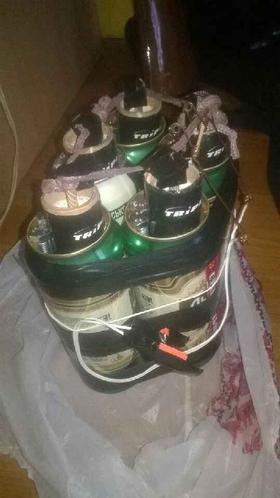 Podczas przeszukania stróże prawa odkryli w jednym z pomieszczeń w mieszkaniu należącym do zabrzanina urządzenie wybuchowe, zbudowane z silnych petard hukowych, włożonych do puszek wraz ze śrubami i nakrętkami. Na miejsce wezwany został zespół pirotechników z Samodzielnego Pododdziału Antyterrorystycznego Policji w Katowicach, którzy zabezpieczyli „znalezisko”. Urządzenie trafiło następnie do laboratorium, gdzie zostanie poddane badaniom i oględzinom przez biegłych z zakresu pirotechniki.