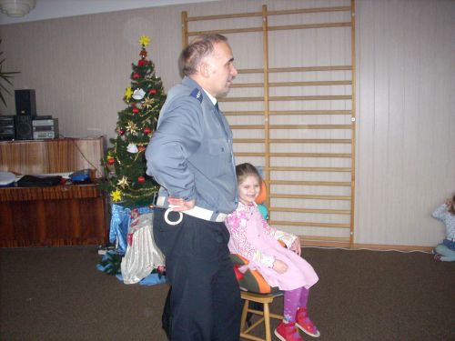 W pierwszej części spotkania dzieci bardzo uważnie wysłuchały bajki, którą czytała pani policjantka. Następnie w ramach pogadanki najmłodsi zapoznani zostali z zasadami bezpiecznego podróżowania samochodem (poznały zasady stosowania fotelika ochronnego). Dzieci otrzymały kolorowanki, które mają za zadanie pokolorować i przekazać rodzicom.