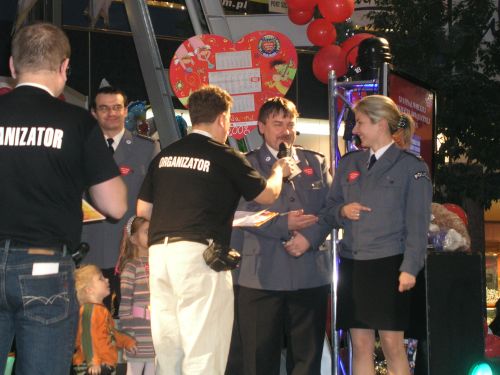 Na głównej scenie w centrum handlowym cały czas trwają licytacje. Wśród przedmiotów, przekazanych przez Policję były m.in. dwa misie, które policja dzięki pomocy Urzędowi Marszałkowskiemu rozdaje dzieciom podczas różnych interwencji. W trakcie licytacji dwóch „misów” zebrano 100 i 70 złotych, które trafiły na konto Wielkiej Orkiestry Świątecznej Pomocy. Zlicytowano również kalendarz policyjny za 50 złotych.