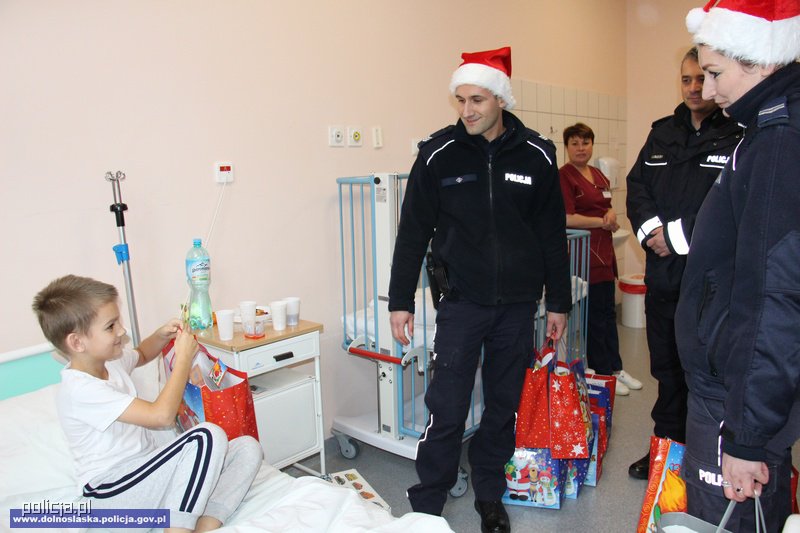 Postanowili odwiedzić dzieci - pacjentów Kliniki Pediatrii i Chorób Infekcyjnych UM we Wrocławiu by, choć na chwilę mogły one zapomnieć o chorobie. Z własnych środków funkcjonariusze przygotowali dla nich prezenty. Kupili m.in. słodycze, zabawki, czy też przybory plastyczne. Wśród upominków znalazły się też własnoręcznie wypieczone pierniczki w kształcie choinki oraz elementy odblaskowe – opaski i kamizelki.