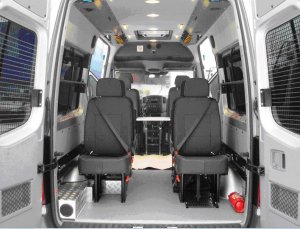 Każdym radiowozem może podróżować 8 policjantów (kierowca, dysponent oraz 6 policjantów w II przedziale) wraz z pełnym wyposażeniem (m.in. kaski ochronne, zestawy ochron osobistych, tarcze, pałki szturmowe, broń). Szerokie i wysokie drzwi przesuwne z obu stron dają możliwość szybkiego opuszczenia pojazdu.