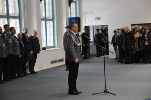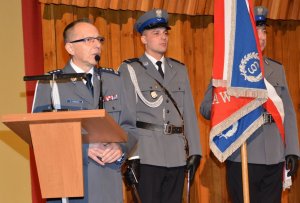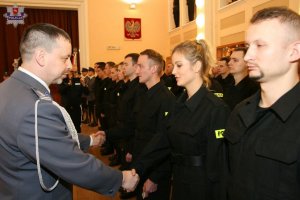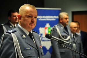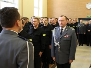 Nadinsp. Tomasz Trawiński pogratulował nowo przyjętym funkcjonariuszom wyboru takiej drogi życiowej, życząc im jednocześnie wytrwałości i pomyślnego zakończenia kursu podstawowego. Podkreślił, że słowami roty ślubowania powinni kierować się w codziennej służbie wszyscy policjanci. Kilka słów komendant skierował również do członków rodzin. Dziękując im za obecność poprosił o wsparcie młodych funkcjonariuszy na ich nowej, zawodowej drodze.