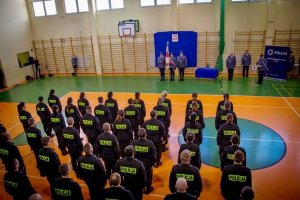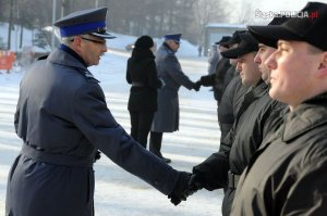 Nowo przyjęci dzisiaj, 05.01.br. w obecności Wojewody Zachodniopomorskiego Krzysztofa Kozłowskiego, Komendanta Wojewódzkiego Policji mł.insp. Jacka Ciegieły i jego zastępców oraz komendantów z rodzimych jednostek wypowiedzieli słowa roty i złożyli ślubowanie, które składają przyjmowani do służby funkcjonariusze.