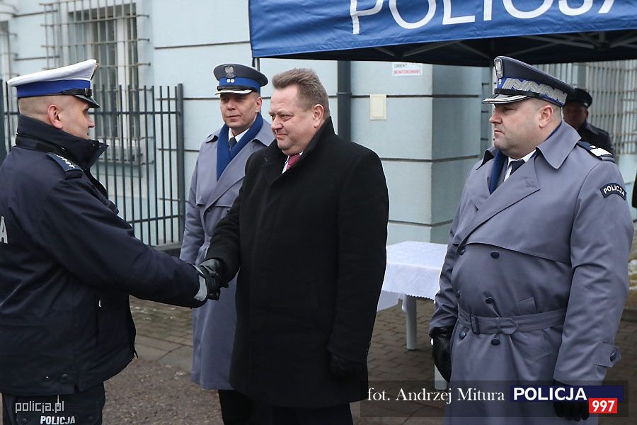 Wczoraj na placu przed Komendą Powiatową Policji w Kolnie odbyło się uroczyste poświęcenie i przekazanie nowego radiowozu Kia cee’d 1,6 Pb. Policyjne auto zakupione ze środków MSWiA przekazane zostało funkcjonariuszom Wydziału Ruchu Drogowego kolneńskiej komendy. Następnie odbyła się odprawa roczna podsumowująca stan bezpieczeństwa na terenie powiatu oraz efekty pracy funkcjonariuszy w minionym roku. Określono również priorytety działań policjantów na bieżący rok. W uroczystościach uczestniczył Sekretarz Stanu w Ministerstwie Spraw Wewnętrznych i Administracji Pan Jarosław Zieliński.