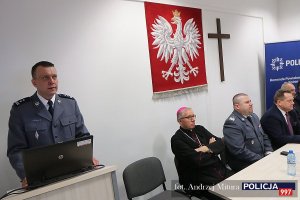W dalszej części spotkania młodszy inspektor Artur Żebrowski przedstawił wyniki pracy funkcjonariuszy Komendy Powiatowej Policji w Kolnie za 2016 rok. Podczas wystąpienia wielokrotnie podkreślano dobre wyniki osiągnięte przez kolneńskich policjantów. W zakresie wykrywalności przestępstw w ubiegłym roku kolneńska Policja osiągnęła wynik 80,5%. Na uwagę zasługuje duży wzrost wykrywalności w zakresie przestępstw kryminalnych, gdzie odnotowano wynik 71,1%. Kolneńska Policja może się również pochwalić wysoką wykrywalnością w kategoriach przestępstw gospodarczych - 91,9% oraz bójek i pobić - 100%. Na drogach naszego powiatu w ubiegłym roku doszło do 243 kolizji oraz 22 wypadków. W zdarzeniach drogowych 3 osoby zginęły, natomiast 28 osób zostało rannych. Funkcjonariusze zatrzymali 117 nietrzeźwych kierujących. Poprawa stanu bezpieczeństwa na drogach powiatu będzie jednym z priorytetowych zadań kolneńskiej Policji w 2017 roku.