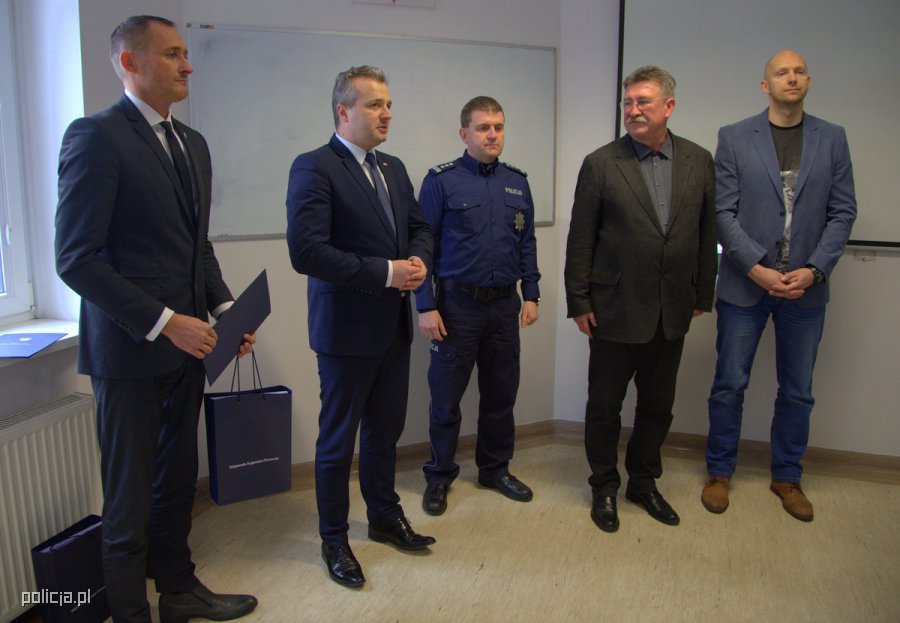 W spotkaniu uczestniczyli także interweniujący wówczas policjanci sierż. szt. Rafał Puziak i st. sierż. Adam Gralak. Za ich służbę podziękował im Wojewoda Kujawsko - Pomorski Pan Michał Bogdanowicz, który w słowach do nich skierowanych, podkreślił specyfikę interwencji i to, że każda sytuacja może przynieść nieoczekiwany obrót. W tym przypadku na szczęście żaden z nich nie doznał trwałego uszczerbku na zdrowiu.