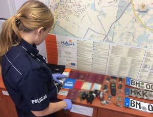 Stróże prawa zabezpieczyli szereg rzeczy pochodzących prawdopodobnie z przestępstw min. tablice rejestracyjne, kluczyki, dowody osobiste, prawa jazdy, dowody rejestracyjne oraz narzędzia służące do przerabiania numerów identyfikacyjnych VIN i do przełamywania kodów zabezpieczających. W związku z tą sprawą zatrzymano 29-letniego mieszkańca powiatu malborskiego, który wynajmował halę służącą za złodziejską dziuplę.