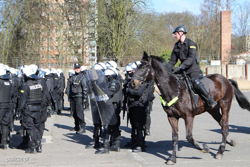 Ćwiczenia przygotowują oddział konny do współdziałania z oddziałami pieszymi przy zabezpieczaniu meczów i innych imprez masowych. Na placu wspólnie ćwiczyli policyjni jeźdźcy i ich koledzy z Oddziału Prewencji Policji w Szczecinie i KMP w Szczecinie.