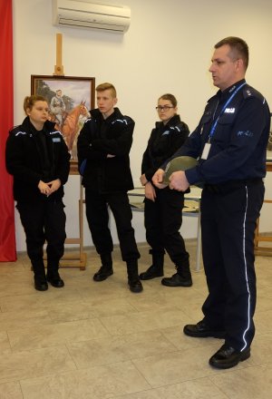 Podczas spotkania omówiono organizację i historię Policji Państwowej. Uczniowie mieli okazję dowiedzieć się kilku ciekawostek o komendantach głównych PP, zasłużonych dla formacji funkcjonariuszach, kapelanach, szczegółach umundurowania oraz specyfice służby policyjnej, związanej z obowiązkiem podporządkowania się dyscyplinie służbowej i wykonania rozkazu przełożonych.