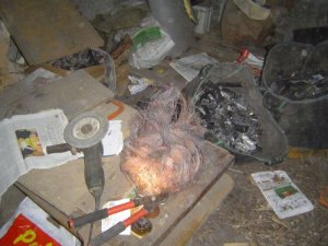 Rano policjanci weszli na jedną z posesji. W dwóch zaparkowanych tam samochodach osobowych zabezpieczyli 6 kg miedzi uzyskanej z przewodów telekomunikacyjnych i 3 kg aluminium. W suterenie budynku, gdzie sprawcy w piecu wypalali przewody, kryminalni znaleźli dalsze 36 kg kabla. Podczas wnikliwego przeszukania w jednym z pojazdów znaleźli także 13 porcji amfetaminy. W budynkach na posesji ujawnili nielegalny pobór energii elektrycznej.