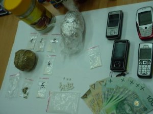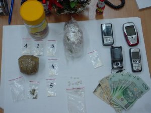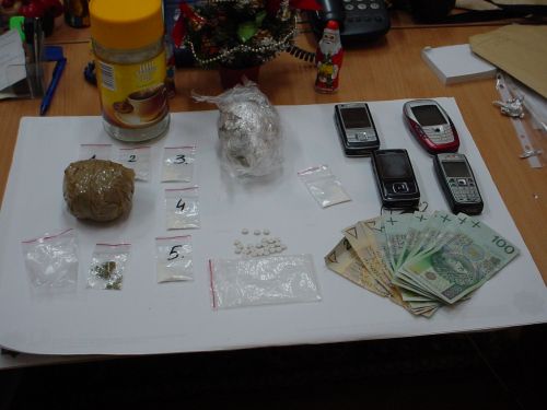 Dochodziła 18.00, gdy na ulicy Lubelskiej w Olsztynie policjanci z „drogówki” zatrzymali do kontroli kierującego oplem vectra. Kierowca popełnił wykroczenie drogowe przekraczając podwójną linię ciągłą. Na miejsce przyjechali funkcjonariusze specjalizujący się w zwalczaniu przestępczości narkotykowej. Policjanci szczegółowo przeszukali wszystkie osoby oraz ich bagaże. W aucie znaleźli narkotyki. Ponadto 24-letni Mateusz K. miał przy sobie słoik, w którym było ponad 100 gram marihuany i kilka gram kokainy. Zabezpieczono także telefon komórkowy oraz pieniądze. O rok młodszy Karol K. w kieszeniach spodni ukrył marihuanę. Natomiast w torbie podróżnej policjanci zabezpieczyli ponad 50 gram „trawki” oraz kilka gram kokainy. Funkcjonariusze na tym nie poprzestali. Przeszukali także miejsca zamieszkania studentów. Na stancji Karola K. zabezpieczyli 24 tabletki ekstazy. Młodzi ludzie zostali zatrzymani.