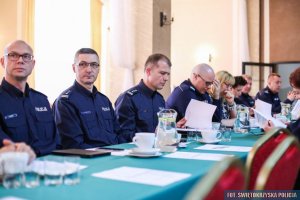 Insp. Dariusz Augustyniak podziękował wszystkim za przybycie i zwrócił uwagę, że jest to istotne przedsięwzięcie zarówno dla świętokrzyskiej Policji, jak i dla poprawy bezpieczeństwa całego województwa. Komendant podkreślił, że harmonogram konferencji jest bardzo bogaty tematycznie, a jego forma sprzyja wymianie doświadczeń.