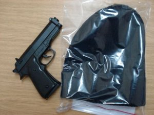 Kominiarkę i atrapę golcka znaleźli policjanci z mieszkaniu 19-letniego mieszkańca Choszczna. Mężczyzna kilkanaście godzin wcześniej napadł na sklep spożywczy w tej miejscowości. Grożąc ekspedientce zabrał 300 zł i papierosy. Teraz odpowie za rozbój.