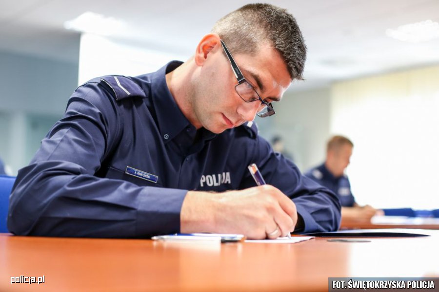 Do dzisiejszej rywalizacji przystąpiło 12 funkcjonariuszy i 1 pracownik cywilny świętokrzyskiej Policji. Musieli się oni zmierzyć z testem składającym się z trzech części. Pytania dotyczyły historii Policji, umundurowania i ceremoniału policyjnego, a ostatnia część dotyczyła patrona świętokrzyskiej Policji - płk Jana Piwnika „PONUREGO”. Każdy z uczestników konkursu na rozwiązanie całego testu miał 60 minut.