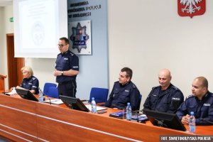 Dziś punktualnie o godzinie 10.00 w sali narad im. mjr Jana Piwnika „Ponurego” Komendy Wojewódzkiej Policji w Kielcach odbył się konkurs historyczny wiedzy o Policji, zorganizowany w ramach kampanii społecznej „SŁUŻĄC NIESIEMY BEZPIECZEŃSTWO”. Jego celem jest m.in. propagowanie postaw prospołecznych i patriotycznych, popularyzacja historii i tradycji Policji w garnizonie świętokrzyskim oraz podniesienie poziomu wiedzy funkcjonariuszy na temat patrona świętokrzyskiej Policji.