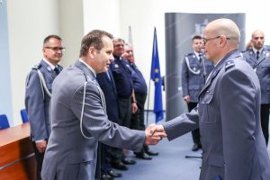 Kolejnym punktem spotkania, było wręczenie nagród Komendanta Głównego Policji oraz Komendanta Wojewódzkiego Policji w Kielcach wyróżniającym się w służbie policjantom. Mowa tu o trzech funkcjonariuszach, którzy ujawnili i zabezpieczyli kolejne 6 kg zabronionych środków odurzających oraz materiały wybuchowe i wyroby akcyzowe, a także udzielali pierwszej pomocy poszkodowanej w wypadku samochodowym 33-letniej kobiecie oraz jej 4-letniemu synowi.