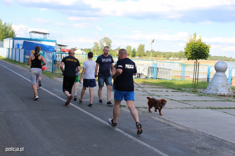 Przy słonecznej pogodzie nad Jeziorem Tarnobrzeskim do biegu przystąpiła 30-osobowa grupa policjantek i policjantów z Komendy Miejskiej Policji w Tarnobrzegu. Już po raz drugi funkcjonariusze włączyli się w akcję charytatywną. Wybiegane kilometry oznaczają konkretną kwotę pozyskaną od sponsorów, która zostanie przekazana na leczenie dziecka. Uczestnicy mieli do pokonania trzy dystanse - 1, 2, i 5 km - wyznaczonej trasy. Wszystkim przyświecał szlachetny cel, pomóc choremu Kacperkowi. Akcja ruszyła 5 czerwca i potrwa do 10 czerwca br.