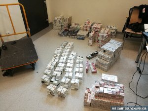 Policjanci z Wydziału do walki z Przestępczością Gospodarczą Komendy Wojewódzkiej Policji w Kielcach zatrzymali 63-latka, który w samochodzie przewoził ponad 3 600 paczek papierosów bez polskich znaków akcyzy. Szacuje się, że mógł on narazić Skarb Państwa na straty z tytułu niezapłaconego podatku na 62 tysiące złotych.
