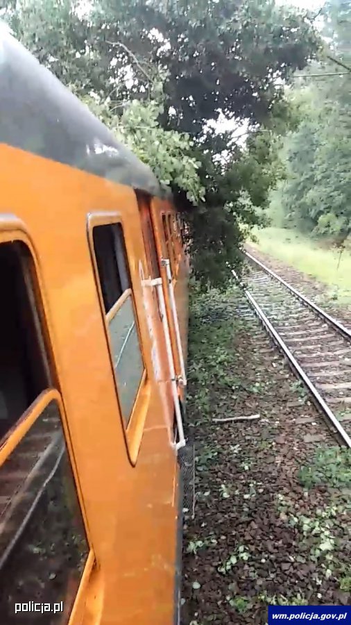 Wczoraj (20 czerwca) około godz. 13:30 na pociąg relacji Olsztyn – Jabłonowo przewróciło się drzewo. W pociągu tym znajdował się nadkom. Radosław Synowiec, który po służbie wracał do domu. Jak relacjonuje policjant, w pewnym momencie do wagonu w którym siedział wbiegł kierownik składu, który poinformował pasażerów, aby Ci położyli się na podłogę. Po chwili pasażerowie poczuli gwałtowne hamowanie pociągu i uderzenie. Jak się okazało na skład relacji Olsztyn-Jabłonowo przewróciło się drzewo.