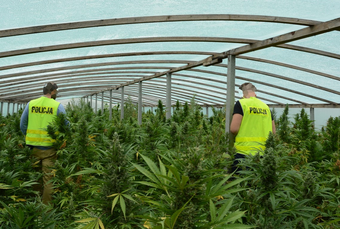 W foliowych tunelach rosło łącznie 1448 krzewów konopi indyjskich, a w magazynach trwała kolejna faza produkcji marihuany. W sumie funkcjonariusze zabezpieczyli ponad 100 kg gotowego suszu.