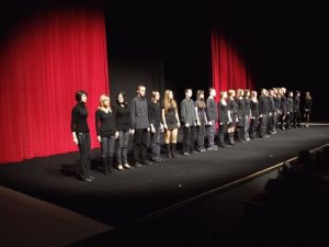 Mroczny spektakl, z popularną muzyką hip-hopową i rapową, chyba zaskoczył młodzież. Niektórzy chichotali, niektórzy komentowali sceniczne kreacje kolegów.