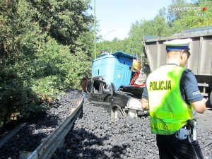 Policjanci wyjaśniają okoliczności wypadku drogowego, do którego doszło na ul. Beskidzkiej w Tychach, przy zjeździe na ul. Tadeusza Boya-Żeleńskiego. Na łuku drogi ciężarówka przewożąca węgiel przewróciła się na samochód osobowy. Dwie osoby z pomocą strażaków opuściły przysypany pojazd, niestety 57-letnia kierująca w wyniku zdarzenia zmarła.