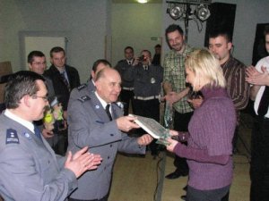 Trójka ochotników spośród widowni stanęła do konkursu wiedzy o ruchu drogowym. Na scenie rozwiązywali ośmiopunktowy test. Ekspertem był tu naczelnik sekcji ruchu drogowego KMP Płock podinsp. Paweł Bednarek. Co prawda nikt nie zaliczył testu w 100 proc., ale wyniki były niezłe. Zwycięzca dostał w nagrodę puchową kurtkę z odblaskami, a pozostali nagrody pocieszenia – pluszowe sówki w policyjnym uniformie i płyty dvd z nagraniem występu Kabaretu Młodszych Panów.