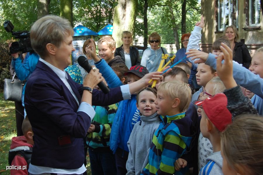 Terenowi dzielnicowi, którzy są tu ze mną, są również od tego, aby rozpoznawać i choć po części spełniać wasze marzenia. Nasi dzielnicowi dowiedzieli się, że większość z was marzy o takich wspaniałych, świetnie wyposażonych plecakach. Dlatego przyszliśmy tutaj, abyście wiedzieli, że jak pojawią się jeszcze inne wasze marzenia, to my, dorośli, możemy je wspólnie zrealizować. Dzisiaj możecie bliżej poznać swoich dzielnicowych i z nimi porozmawiać – mówił ciepło do dzieci insp. Cezary Petrus. Życzył im również samych piątek i uśmiechów w nowym roku szkolnym.